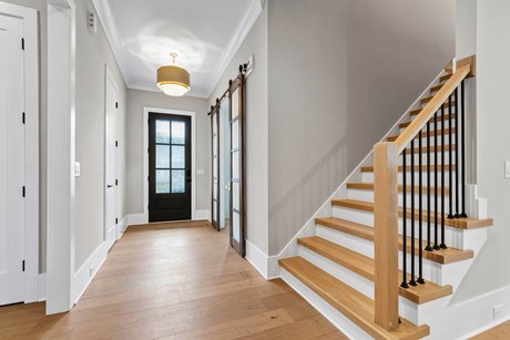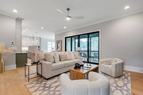 A welcoming front porch invites you into a light-filled foyer, which opens to a private study—perfect for working from home or managing daily tasks. The open-concept main floor is ideal for gathering and entertaining, featuring a cozy living room with a fireplace, a chef-inspired kitchen with a large island and generous walk-in pantry, and a dining area that opens to a screened porch and deck, extending your living space outdoors.